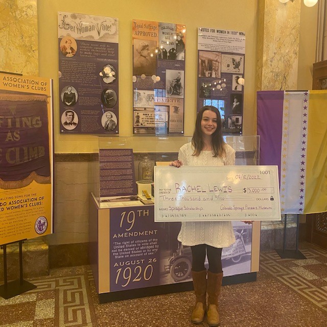 The Marshall and E.J. Sprague Scholarship was established in honor of the Spragues, who for generations served the people of the Pikes Peak Region and delighted in documenting and preserving the area’s rich heritage. The scholarship is intended to recognize students who show a dedication toward and appreciation of the study of history and is made possible through an endowment to the Colorado Springs Pioneers Museum Foundation in honor of the Spragues. Each year one $3,000 scholarship is awarded to a high school student competing in the Colorado Springs Regional History Day competition and is intended for college-related expenses.