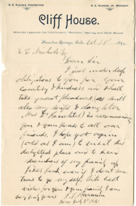 Ed Nichols generously donated the family’s collection to the Colorado Springs Pioneers Museum, to fully reveal a collection rich in the history of the Cliff House, Manitou Springs, the Nichols Family, and Aircraft Mechanics, Inc. The twelve cubic feet of photographs, correspondence, journals, ephemera, and objects—such as an airplane part forged at Aircraft Mechanics Inc. —will be an invaluable resource for researchers, museum guests and staff. Thank you, Ed, for sharing your family’s history with us, and entrusting us to preserve and share this wonderful collection in perpetuity.