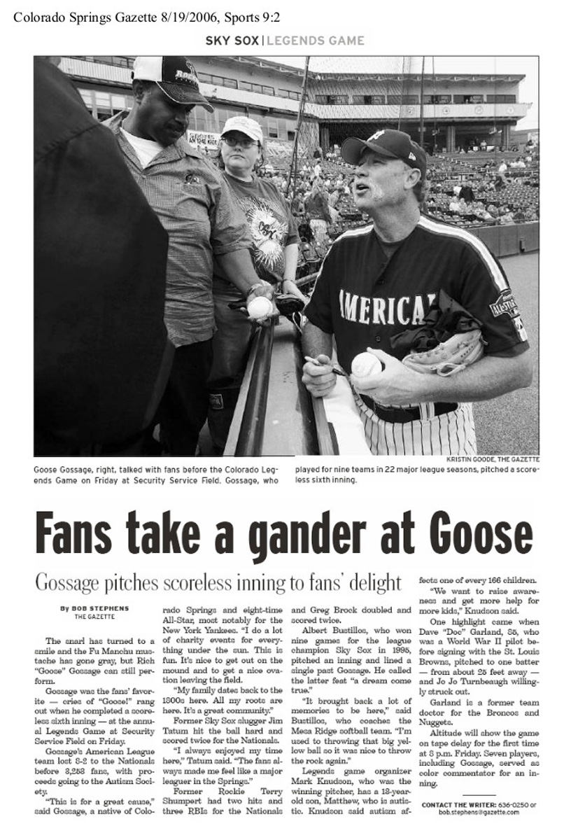 Goose Gossage loves living in Colorado Springs. “If you’ve grown up around oceans or mountains, they are in your DNA. And I grew up around mountains. I played on nine different teams, and I enjoyed every place I lived. But I love being outdoors, and this place is the best for that.” As for his career, he is proud of his longevity as a relief pitcher. “I’m really proud that I turned my goal of putting on a ‘big league’ uniform even one time, into 22 years. I lived a dream, and I was very, very fortunate to be able to do it.”