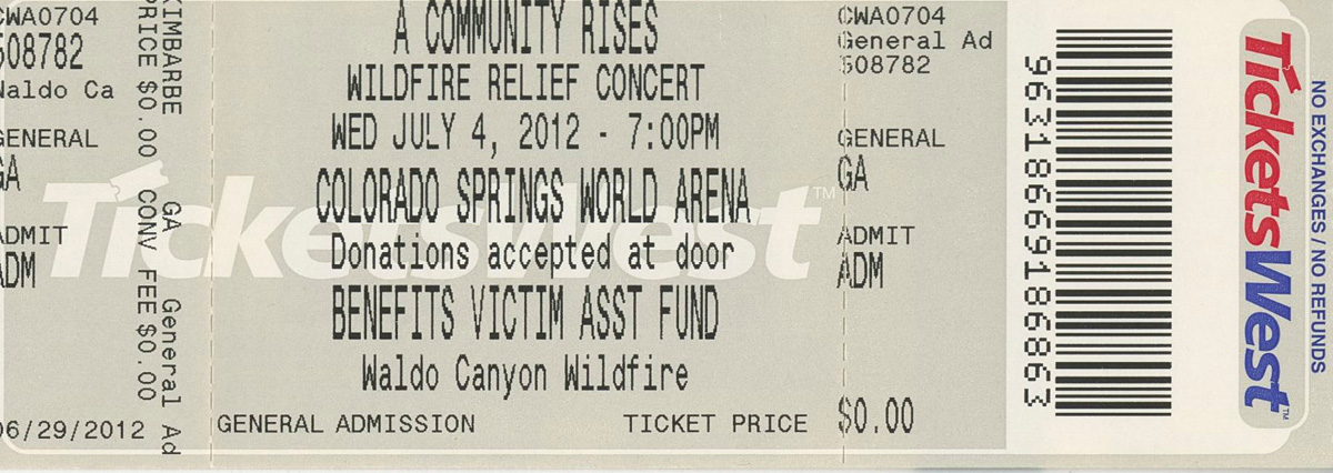 In the aftermath of the fire our community responded in unprecedented ways. Donations of food, money and volunteers flooded to local support agencies and scores of residents waving flags and homemade thank-you signs lined city streets to honor first responders. As Mayor Steve Bach noted, “The values of our citizens were reflected in so many selfless acts of kindness, generosity and respect for those who lost so much.” This exhibit is dedicated to all those touched by the Waldo Canyon Fire. Our hope is that no matter how you experienced this disaster part of your story is reflected within.