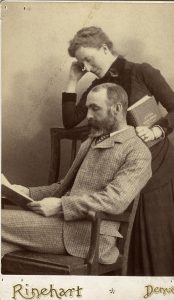 William Abraham Bell, friend and business partner of General William Jackson Palmer, was born in Ireland in 1841 and received his B.A. and  M.B. (Medicinae Baccalaureus) degrees from Cambridge University. William and wife Cara built Briarhurst Manor, a “country estate” in Manitou Springs. In 1886 William Bell was away on business when Briarhurst burned. With her children and servants safely outside, Cara rescued the family’s irreplaceable Thomas Moran painting, “Mount of the Holy Cross.” Eventually, the Bells returned to England, and the painting was acquired by the Autry Museum in Los Angeles.