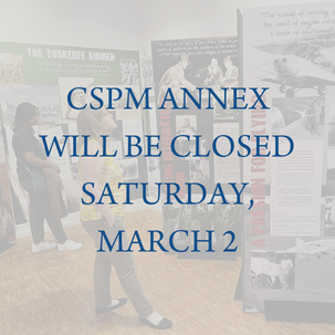 The CSPM Annex will be closed on Saturday, March 2 for scheduled Plaza of the Rockies maintenance.