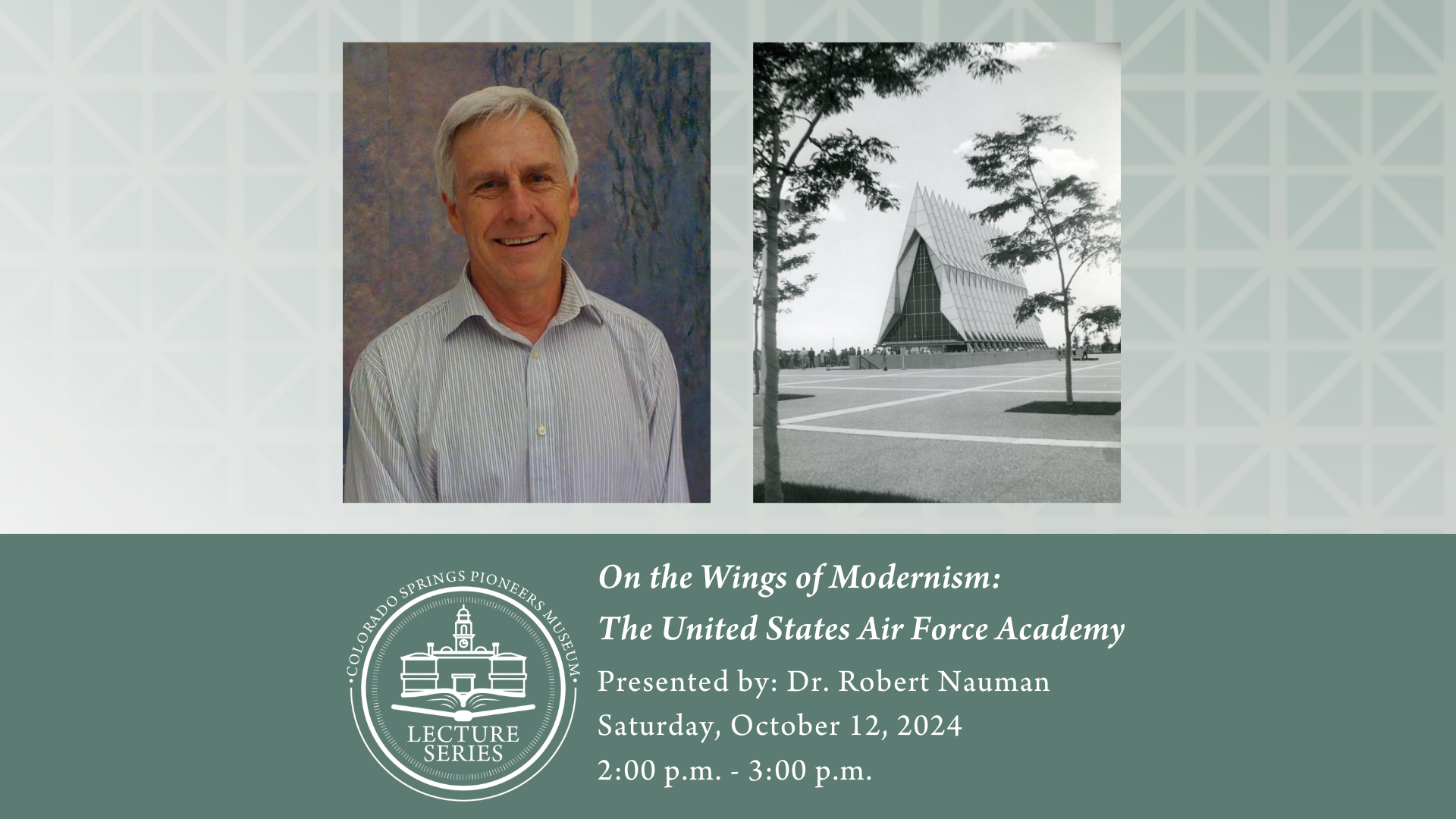Robert Nauman earned his Ph.D. in art and architectural history from the University of New Mexico and currently teaches in the Art and Art History Department at the University of Colorado at Boulder.  His book On the Wings of Modernism: the United States Air Force Academy was nominated for the Alice Davis Hitchcock Award for distinguished scholarship by a North American author in the history of architecture.  Subsequent publications have addressed specific Academy architects as well as preservation issues as they relate to the Academy design.