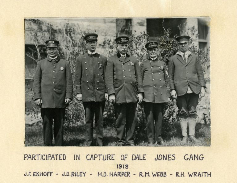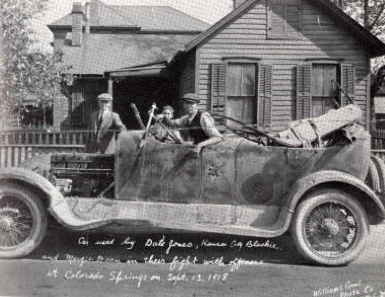 “Car used by Dale Jones, Kansas City Blackie, and Margie Dean in their fight with officers in Colorado Springs on Sept. 13, 1918.”